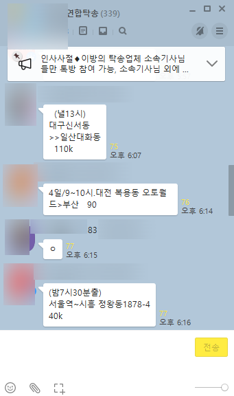 또한 프로그램 1개 사용시 15,000금액이 부과되면 관리비 3만원이 있습니다. 저의 탁송사는 전국에서 최저가는 절대 아닙니다. 최저가보다 1만원 더 비싸다고 할 수 있습니다. 월3만원 탁송 대리 기사님에게는 상당히 부담 될수 밖에 없습니다. 그러나 저의 탁송사는 얼라이언스 특 등급으로 (연합회) 에서 최고 높은 등급이며 1등급보다 높습니다. 특등급은 저의 뿐이라고 생각하시면 됩니다. 또한 카톡방으로 통한 연합회기사 우선 배차 진행중에 있으면 카톡방을 통하여 하루 작게는 150콜 많게는 500콜이 발생하고 있습니다.