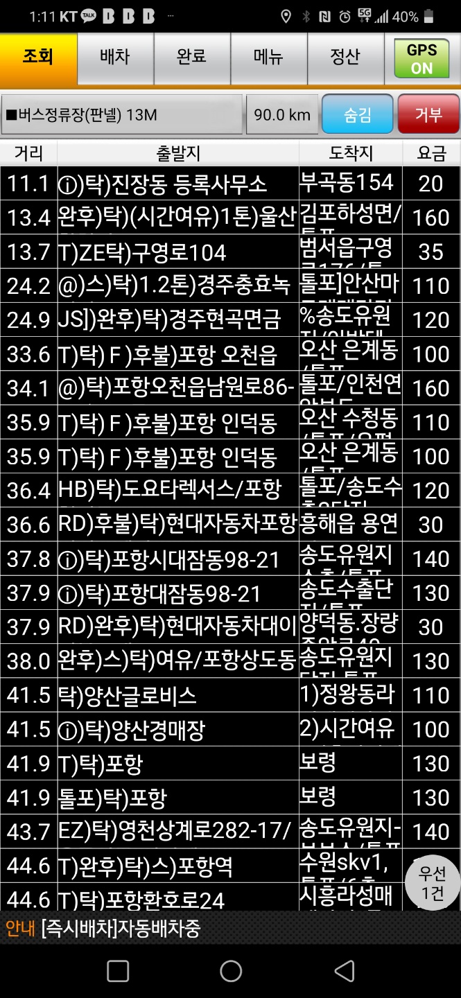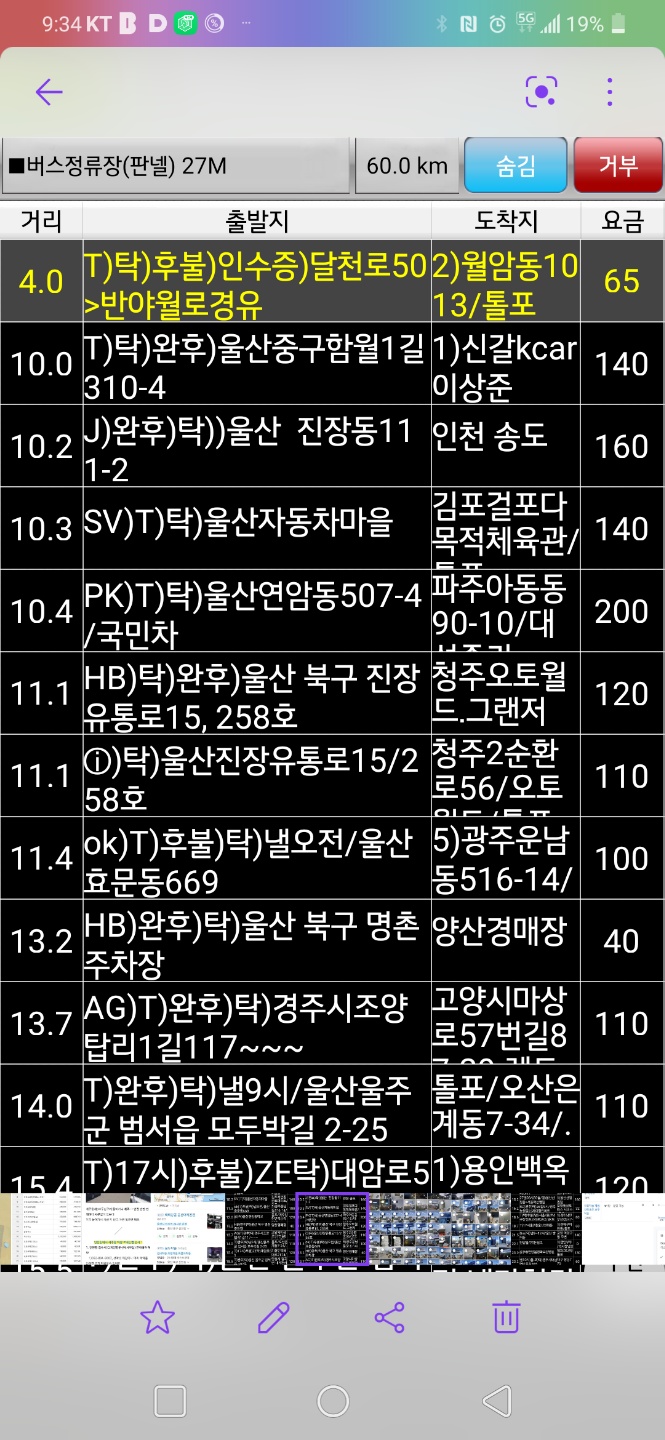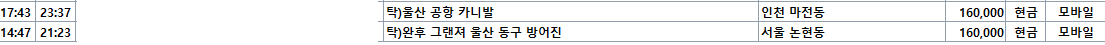 가격이 낮다고 잘못 진행 할 경우 정말 상상 그 이상의 피해를 보시는 분도 많이 봤습니다. 한예로 너무 낮은가격에 탁송배차를 올리시고 배차가 안되어 저의쪽으로 오는 경우가 있었습니다. 울산에서 광주 10만원에 진행을 했었고 실제 당일 시가는 인천 기준 16만원에 진행되고 있었습니다. 일부 오더는 20만원을 넘기는 경우까지 발생 했습니다. 이러한 가격이형성되는 경우는 낮은 금액에 배차를 진행하고 결국은 다른 탁송사에 의뢰해서 긴급 배차가 진행 되면서 서로가 가격을 올리는 사항이 발생한 경우 입니다. 제가 이때 울산에서 인천까지 16만원에 톨비 지원으로 근처에 있는 기사분에게 전화로 콜을 드리고 차량을 배차시킨 사례 입니다.